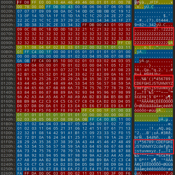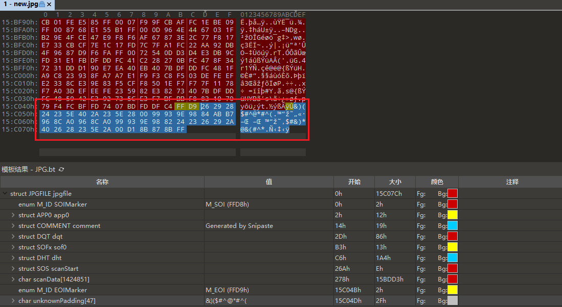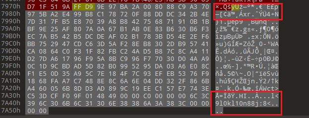 - 如果隐写的内容较少会出现,你会看见尾部的特征结构如下: