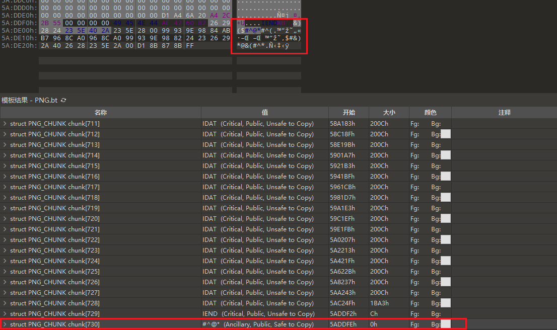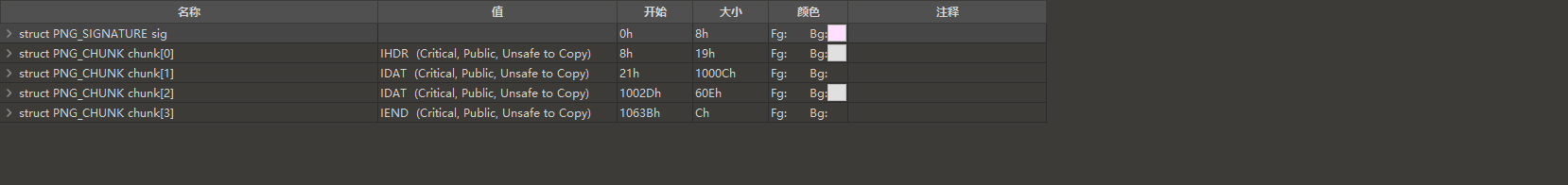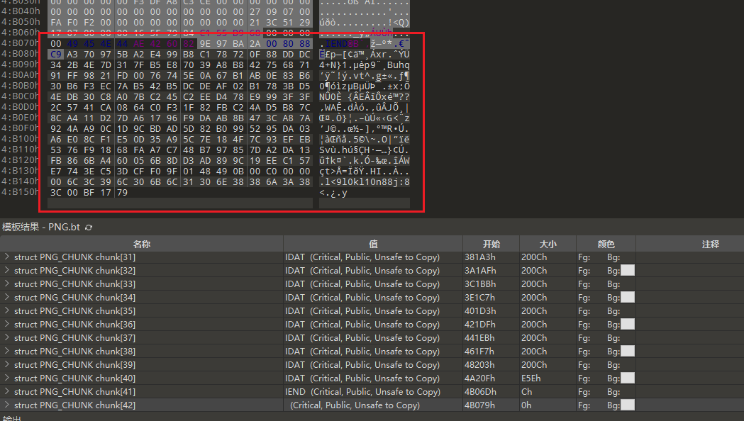IDAT结构大小会为0x1000C,其中length占4字节,IDAT标记占4字节,内容占65536字节,CRC32占4字节。