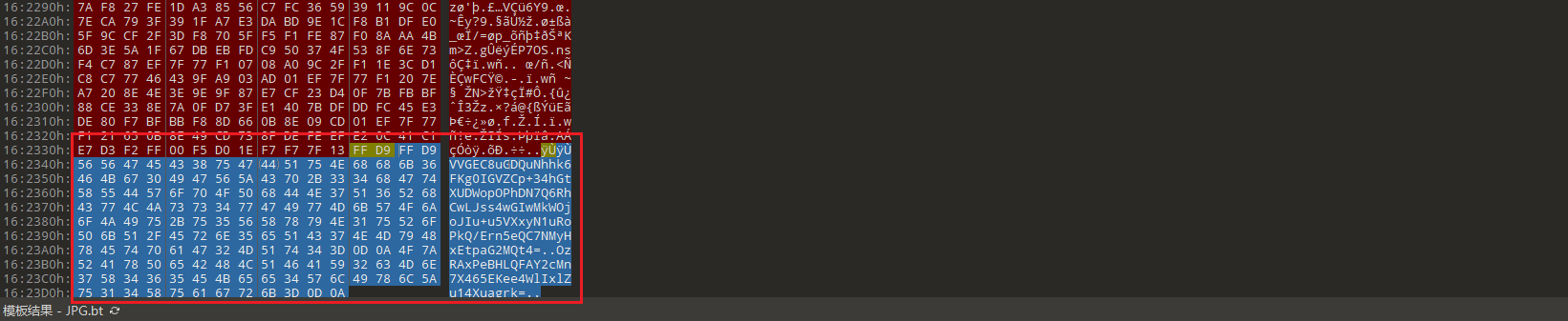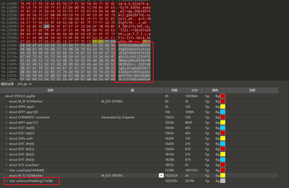 FF D9` + `第一段base64` + `0D 0A` + `第二段base64` + `0D 0A
